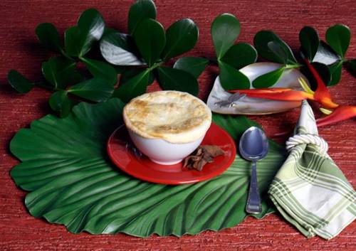9. colocar em uma sopeira, fazer um espiral de creme de leite e enfeitar com os ovos reservados.